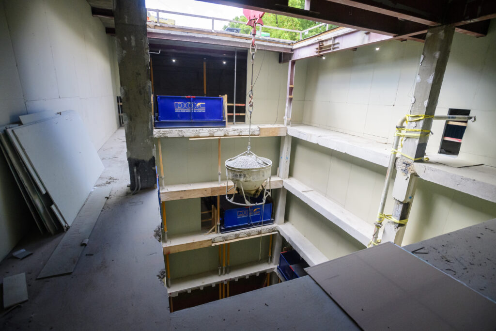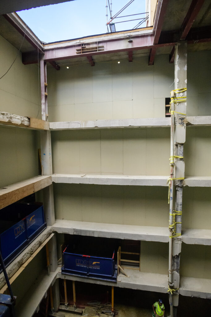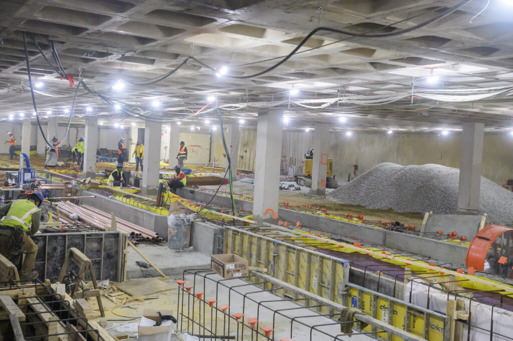 Speaking of debris, D Level is where so much essential work is happening. The building’s mechanical room will be housed on D Level, and it is where the underground utilities from the city will connect. Though not the most glamorous or photogenic part of the process, making sure the building’s mechanical, electrical, and plumbing systems work seamlessly are critically important to the function of such a high-use space.